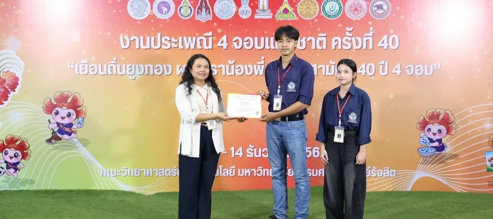 รับรางวัลในพิธีนอมวันทาพระคุณครู ประจำปีการศึกษา 2568 นางสาวธัญญ์นภัส วัฒนาการพิบูลย์ นักศึกษาหลักสูตรวิทยาศาสตร์การประมง ได้รับมอบเกียรติบัตร แสดงความยินดี จากการได้รับรางวัลชนะเลิศอันดับ 2 ภาคโปสเตอร์ ในประชุมวิชาการ และนำเสนอผลงานประชุมวิชาการระดับปริญญาตรีบัณฑิต ด้านวิทยาศาสตร์และเทคโนโลยีการเกษตรแห่งชาติ
